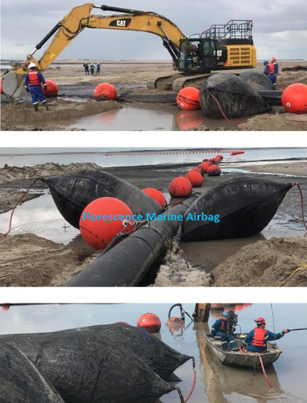 Please the picture 1 of Florescence inflatable rubber airbag structure . It is composed by airbag body and terminal iron part. The airbag body is composed by natural rubber and strength fiber material through vulcanization processing; The terminal iron part is made of cast iron, it is combined closely with the bag body; One end is for pulling when move the airbag, and the other end is for charging and discharging the air. All the fittings in picture 2 and 3 will be supplied with airbags for free.